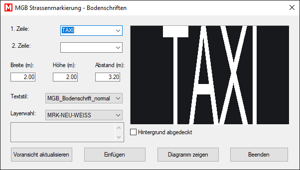 Die Applikation "MGB Strassenmarkierung" ist ein einfach zu handhabendes Programm für BricsCAD. Das Erstellen und Ändern von Strassenmarkierungen nach VSS Norm wird damit so einfach wie noch nie. Direkt in Ihrer gewohnten CAD Umgebung.